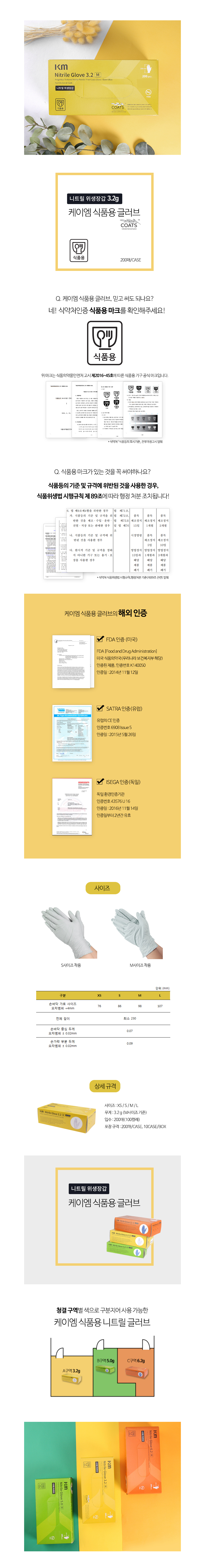 KM 식품용 위생 니트릴 장갑 3.2g - 100켤레