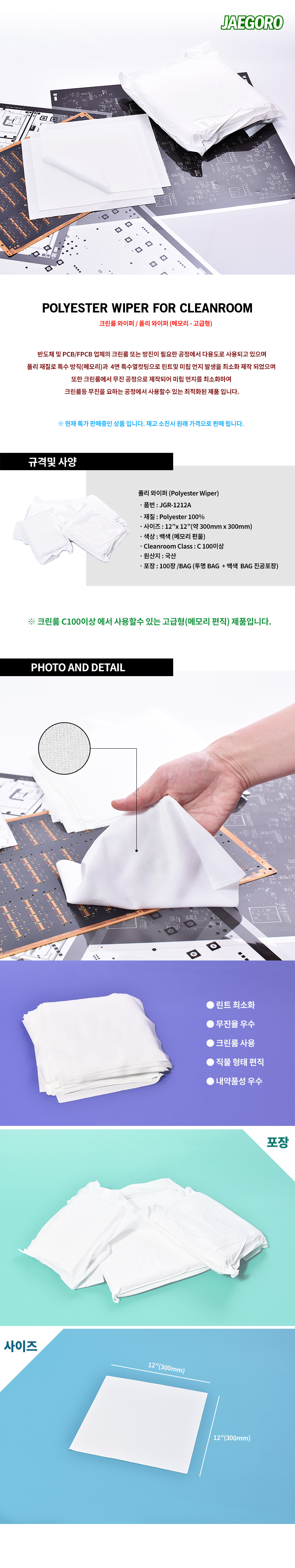 • 크린룸 폴리와이퍼 무진보루 12인치(30×30cm) 일반형 100장